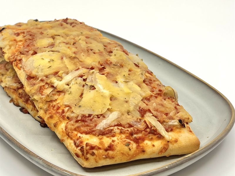 Onze kaas ui kruier met tomatensaus, ui en kaas. Dit product is vegetarisch.